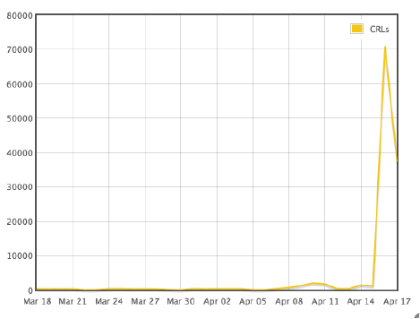 Globalsign's Certificate Revocation List (CRL) grew to 4.7MB from 22KB over four days following the discovery. CRL downloads generated 40Gbps of traffic across the internet. Assuming $10/Mbps average in 2014, just these additonal CRL downloads would have cost Globalsign $400,000USD for the monthly bill. (cloudflare.com). The cost of this using AWS infrastructure would be $952,992.40/month (in 2014). Revoking certificates also has the cost of risking a denial of service for those who do not have the updated lists.